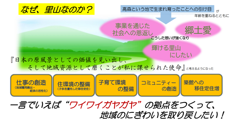 - プロジェクト名:Miyagi里山活性化プロジェクト! ~高森ワールドを見える化し、将来ビョンを描こう~