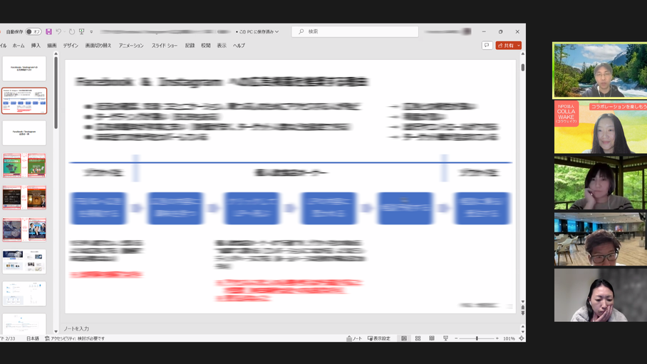 - 実施形態:オンライン(Zoom)を中心に対面も併用